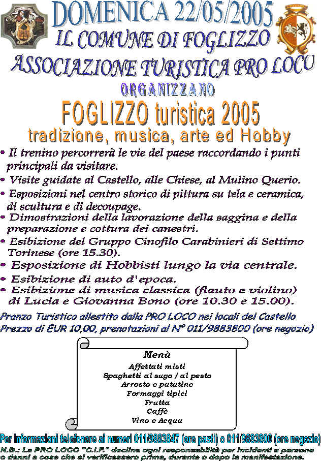 viene offerto ai partecipanti il pranzo dalla Pro Loco di Foglizzo.
